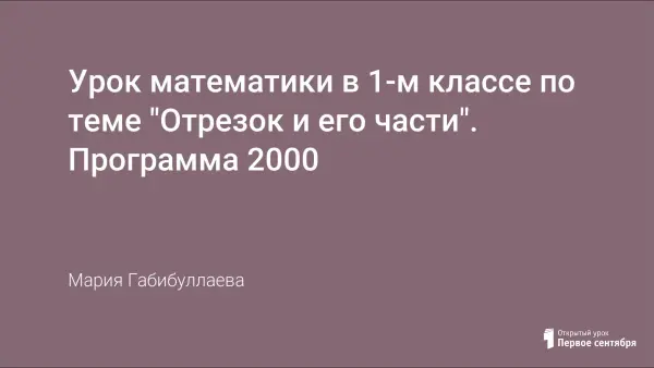 Урок разработан в технологии деятельностного метода по учебнику Л.Г. Петерсон "Математика. 1 класс". Целью урока является сформировать представление об отрезке как самой короткой линии, соединяющей две точки; сформировать способность к фиксации взаимосвязи между целым отрезком и его частями с помощью символов.