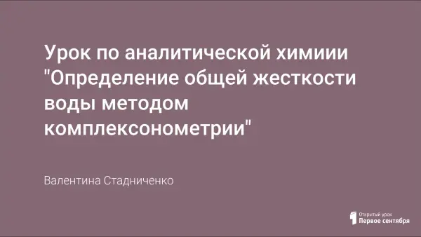 Урок-лабораторная работа разработан по предмету "Аналитическая химия" для обучающихся по профессии "Технология продукции общественного питания". В ходе лабораторной работы в основе определения общей жесткости воды используется один из методов титриметрического анализа – комплексонометрический. На уроке повторяются основные понятия, используемые в титриметрическом анализе, учащиеся учатся определять общую жесткость воды.