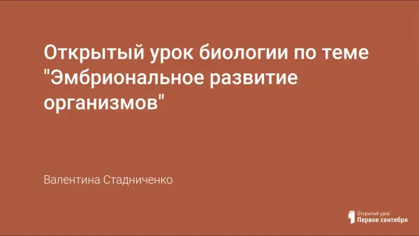 Данный урок даёт научную информацию об эмбриональном развитии зародыша и носит воспитательный характер. В ходе урока задания направлены на формирование логических умений, умения работать в группах и самостоятельно, проводить самоконтроль и взаимоконтроль. Процесс изучения связан с использованием компьютера.