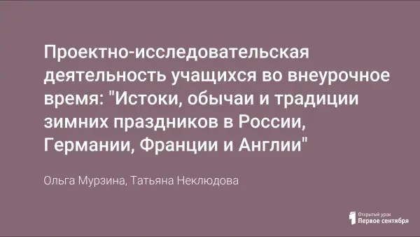 Из опыта работы над полилингвистическим проектом «Истоки, обычаи, традиции зимних праздников в России, Германии, Франции и Англии». Авторы рассказывают о роли проектной деятельности, делятся опытом о работе над полилингвистическим проектом, описывая этапы работы, методы исследования и творческое решение проблемы проекта.