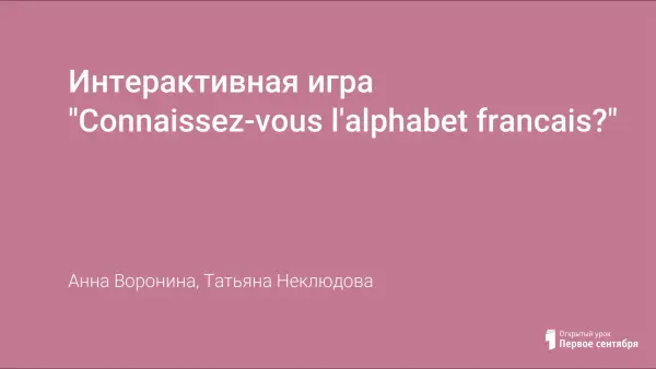 Интерактивная игра "Connaissez-vous l'alphabet francais?" на французском языке создана для 5-х классов, изучающих французский как второй иностранный, в качестве дополнительного материала, который может быть использован на усмотрение учителя на уроках и во внеурочной деятельности.