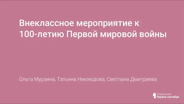 Внеклассное мероприятие создано для учащихся 8–9-х классов. Это попытка рассказать об античеловеческом и антигуманном характере любой войны и ее последствиях для человечества на примере Первой мировой войны. Мероприятие применяет приемы развития критического мышления и деятельностный подход. Сценарий может быть использован как дополнительный материал на уроках истории, на занятиях кружков немецкого и французского языков.