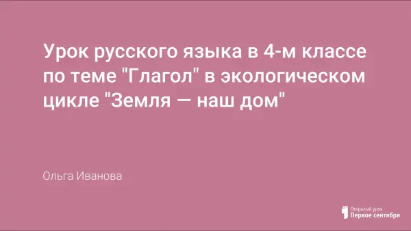 Урок по теме "Разбор глагола по составу", проводится после таких тем, как: "Что знаем о глаголе", "Словоизменение глаголов", "Правописание безударных личных окончаний глаголов". Урок является не только обучающим, но и закрепляющим знания учащихся по теме "Глагол". В урок включены все виды разборов, объединённые общей экологической темой "Земля – наш общий дом". "Путешествие" в город Глагольск проходит в интересной и увлекательной форме, что активизирует деятельность учащихся данной возрастной группы.