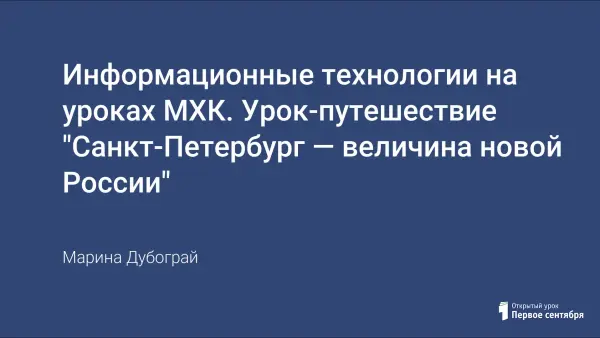 Представлен урок по мировой художественной культуре в 9-м классе. Форма проведения урока – виртуальное путешествие. Урок по теме "Санкт-Петербург: величие новой России" предполагает знакомство детей с огромным информационным материалом по данной теме. Используется компьютерная презентация.