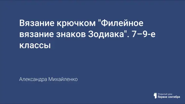 Дети на занятии работают заинтересованно, если видят сразу результаты своего труда. В работе предлагаются начальные навыки вязания крючком со схемами Зодиака на основе филейного вязания. Автор предлагает мотивы со знаками Зодиака, больших и маленьких.