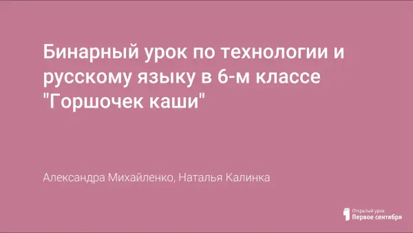 Бинарный урок по технологии и русскому языку в 6-м классе "Горшочек каши"