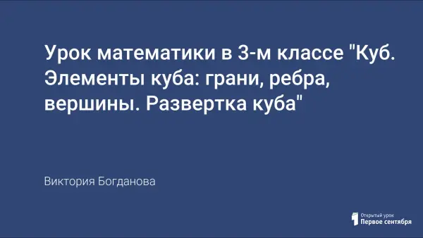 На уроке дети знакомятся с элементами куба: гранями, рёбрами, вершинами, по технологическим картам учатся чертить развертку куба. Работа в группах помогает сформировать положительную мотивацию школьника в обучении. Используется личностно-ориентированный подход к ребенку с опорой на его жизненный опыт.