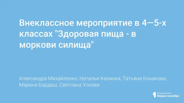 Внеклассное мероприятие в 4-5-х классах с использованием мультимедийных технологий, с использованием здоровьесберегающих технологий. Хватит поглощать чипсы, сникерсы, есть вкусная морковь!