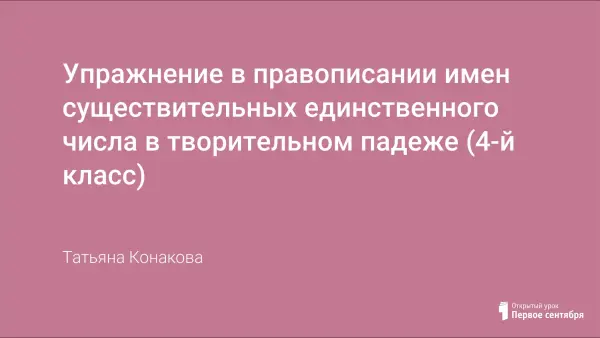 Раскрытие особенностей правописания безударных окончаний имен существительных в творительном падеже. Совершенствование правописания безударных падежных окончаний имен существительных. На данном уроке используются слайды презентации.