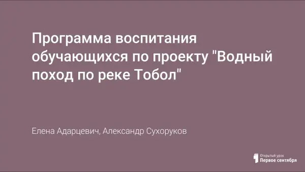 Программа воспитания обучающихся по проекту "Водный поход по реке Тобол"