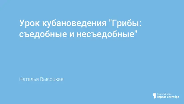 Данный урок кубановедения может быть использован в курсе «Окружающий мир» по теме «Грибы». Представлена презентация съедобных и несъедобных грибов.