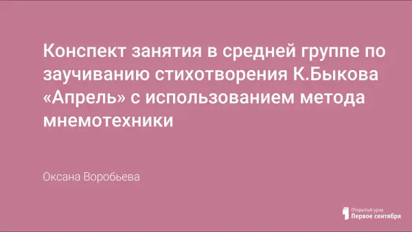 Конспект занятия в средней группе по заучиванию стихотворения К.Быкова «Апрель» с использованием метода мнемотехники