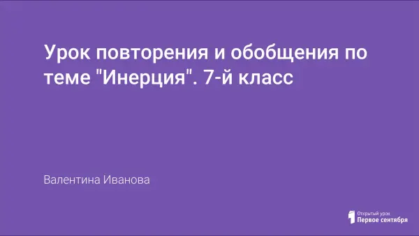 Урок мы посвящаем Галилею и его закону инерции. Инерция ( от лат. Inertia - неподвижность, бездеятельность)- сохранение телом состояния покоя или равномерного прямолинейного движения до момента действия на него внешней силы.