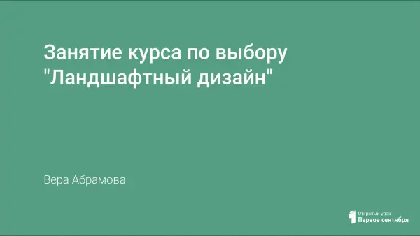 На уроке по ландшафтному дизайну ученики знакомятся с искусством озеленения территории; украшают земельный участок малыми архитектурными формами. В форме диалога специалисты ландшафтного бюро (ученики) предлагают заказчику варианты оформления приусадебного участка.