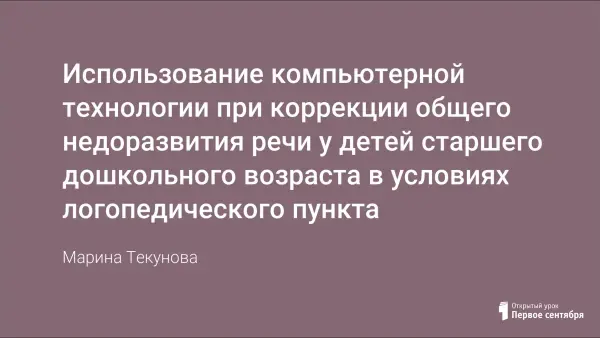 Целенаправленное использование компьютерной технологии в процессе логопедической работы с детьми старшего дошкольного возраста позволяет оптимизировать процесс коррекции звукопроизносительной и просодической сторон их речи и в целом содействует гармонизации развития.