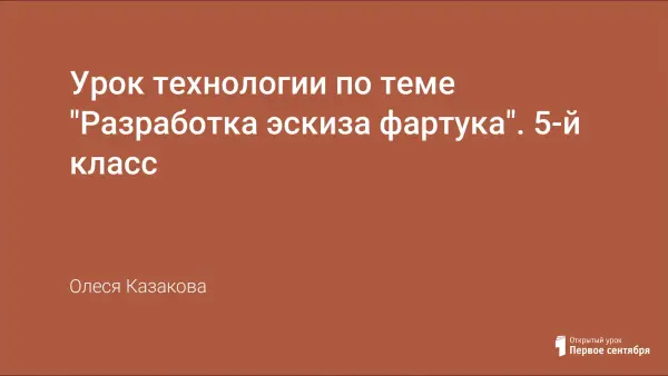 Данный урок входит в раздел "Технология изготовления швейного изделия" по программе 5-го класса. На занятии учащиеся выполняют эскизы фартуков, подбирают к нему соответствующую ткань, учатся снимать мерки. Дети работают с большим количеством наглядных пособий.