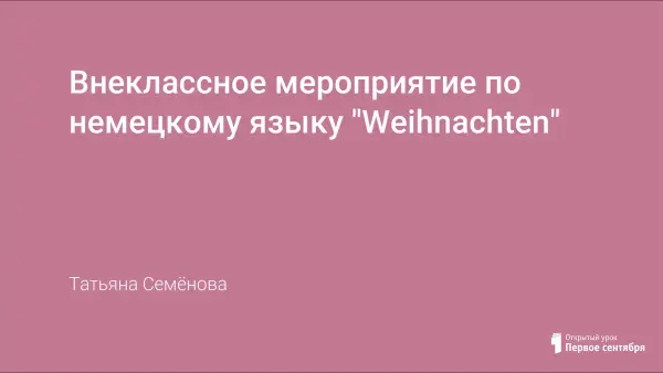 Праздник, посвященный Рождеству, проводится для учеников школы с целью развития и поддержания их интереса к иностранному языку. Способствует расширению их кругозора, развитию творческих способностей, эстетического вкуса, воображения, памяти, внимания, формированию у них самостоятельности, организованности и аккуратности при выполнении порученных заданий.