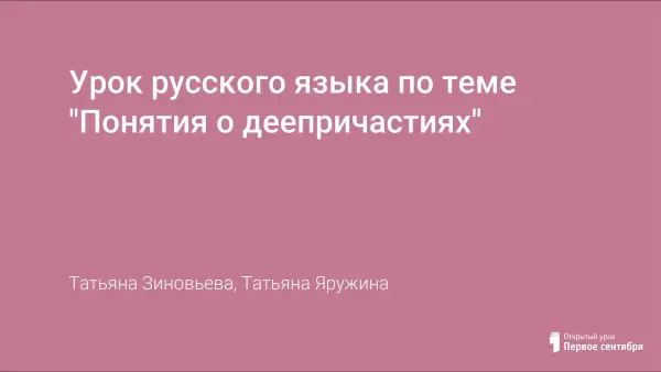 Нами представлено два урока русского языка по теме "Деепричастие". Они являются образцами из системы занятий, на которых одновременно с формированием языковой и коммуникативной компетенций осуществляется развитие ОУУН обучающихся. Первый - урок изучения нового материала, второй - урок-исследование, на котором школьники учатся использовать деепричастие в речи.