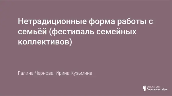 В образовательном учреждении мы используем нетрадиционные формы работы с родителями. Фестиваль семейных коллективов сближает всех участников воспитательно-образовательного процесса и ставит своей целью приобщение детей к семейным традициям, обычаям и возрождение семейных ценностей.