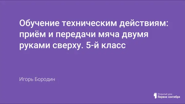 Цель урока: овладение техническими действиями приёма и передачи мяча двумя руками сверху.