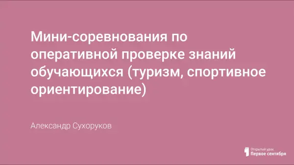 Работа адресована педагогам общеобразовательных школ и учреждений дополнительного образования, специалистам по работе с детьми и молодежью. В ней дается описание подготовки и проведения мини-соревнований, образцы упражнений и заданий. Используя предложенный материал, педагог или тренер может самостоятельно разработать и провести свои мини-соревнования на уроке, на тренировке, в походе, в летнем и зимнем оздоровительном лагере как в помещении, так и на свежем воздухе.