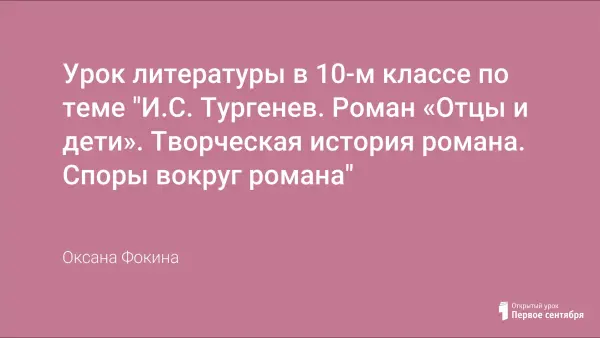 Урок проводится с целью организации исследовательской деятельности учащихся 10-го класса по восприятию, осмыслению и первичному усвоению знаний о творческой истории романа И.С. Тургенева «Отцы и дети», а также знаний о спорах вокруг романа. Использование информационных технологий на уроке призвано формировать исследовательскую компетенцию учащихся.