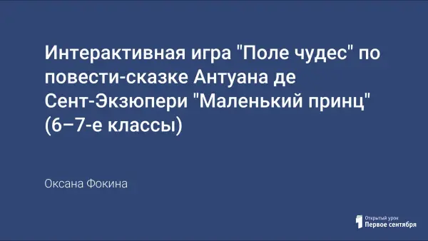 Игровые технологии в преподавании литературы, примером которых является интерактивная игра "Поле чудес" по повести-сказке Антуана де Сент-Экзюпери "Маленький принц".