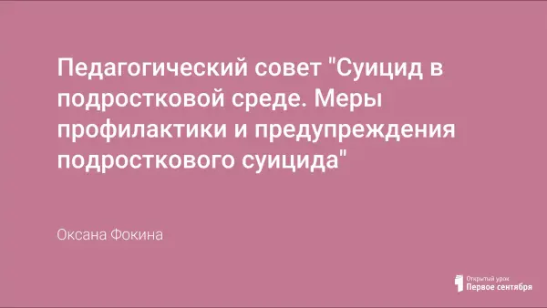 К концу педагогического совета участники получают представление о существовании проблемы подросткового суицида. Формируется понятие о подростковом суициде, его видах, причинах, признаках готовящегося самоубийства.