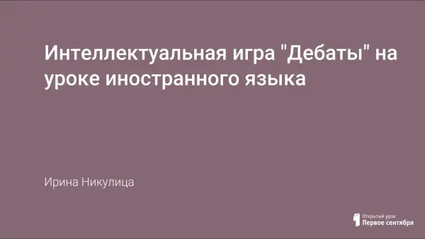 Игра проводится в рамках обобщающего занятия. Задача игры – доказать выбранную точку зрения, соблюдая логику выступления (тезис, аргумент, ссылка-поддержка), переубедить соперника. С точки зрения развития речевой компетенции дебаты – это поле для речевого общения, аргументации, критики, импровизации.