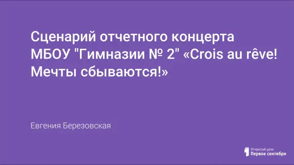 Представлен сценарий отчетного концерта к 25-летию МБОУ "Гимназии № 2" г.Инта.