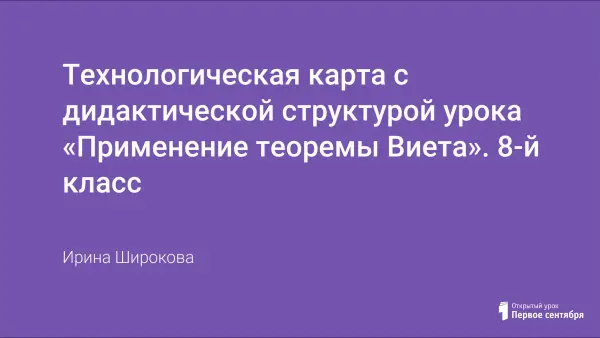Цель урока: создание условий для применения теоретических знаний при решении задач по теме «Теорема Виета».