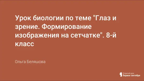 Цель урока: предметные, метапредметные, личностные (воспитательные). Основные понятия и термины: склера, роговица, сосудистая оболочка, радужка, зрачок, сетчатка, палочки, колбочки, хрусталик, стекловидное тело, аккомодация, оптическая система глаза. Формируются исследовательские навыки учащихся, умение систематизировать материал, аргументировать свою точку зрения.
