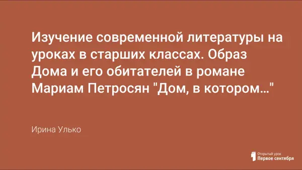 Автор знакомит учащихся с литературным событием 2009 г. в области литературы, книгой М.Петросян "Дом, в котором...". Создать мотивацию на чтение произведения, вызвать у школьников интерес к тому, о чем они, по сути, ничего не знают.