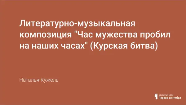 Работа представляет собой сценарий внеурочного занятия, а также может быть применена и на уроке истории. Посвящена одному из знаменательных событий в ходе Великой Отечественной войны — битве под Курском.