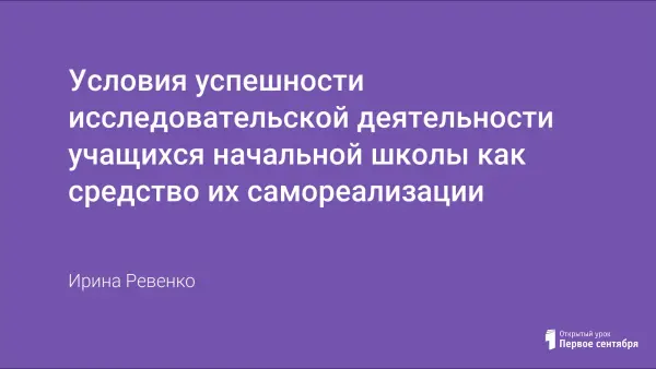 Условия успешности исследовательской деятельности учащихся начальной школы как средство их самореализации