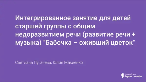 Интегрированное занятие для детей старшей группы с общим недоразвитием речи (развитие речи + музыка) "Бабочка – оживший цветок"