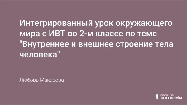 Урок показывает возможность соединения темы с информационными технологиями. Комбинированная работа учащихся поможет более полно усвоить тему. Урок проводится в компьютерном классе с использованием обучающего диска «Моё тело. Как оно устроено».