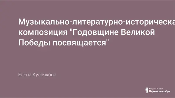 Музыкально-литературно-историческая композиция посвящена Победе советского народа в Великой Отечественной войне. В композицию включены цифры статистики, показывающие, с каким трудом далась народу Победа, свидетельства очевидцев, прошедших ужасы войны, отрывки из трудов военных историков.