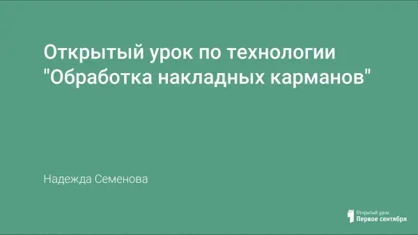 Урок призван отрабатывать умения и навыки обработки накладных карманов в технологической последовательности, формировать трудовые приемы выполнения карманов, воспитывать профессиональные качества: аккуратность, усидчивость, творческий подход к работе.