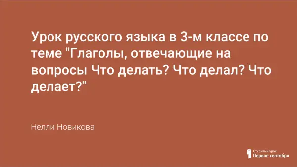 Урок русского языка в 3-м классе формирует представления учащихся об изменении глаголов по временам;