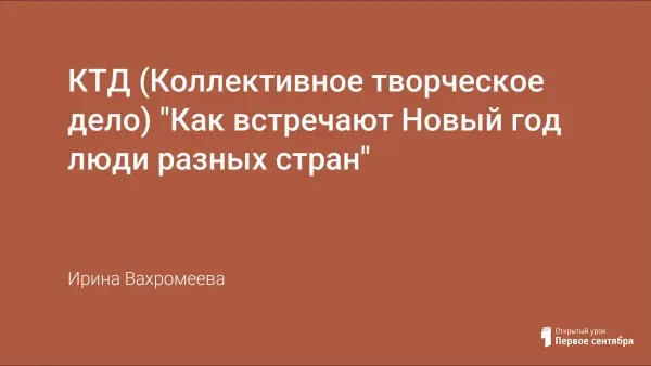 Коллективное творческое дело (КТД) — это дело, которое объединит старших и младших, создаст радость общения, позволит узнать много интересного об особенностях празднования Нового года в разных странах.