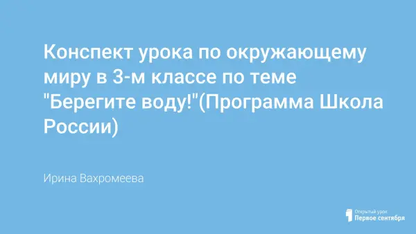 На уроке учащиеся, работая в группах по инструкции учителя с научными текстами, определят значение воды в жизни нашей планеты и в жизни человека; выявят причины загрязнения воды; предложат способы ее защиты.