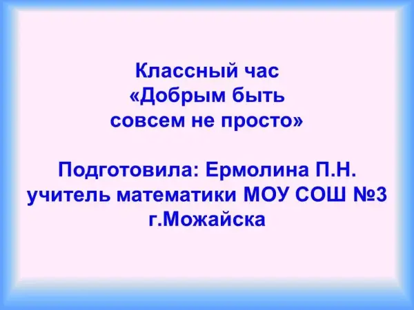 Представлен классный час "Добрым быть не легко".