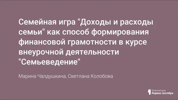 Семейная игра "Доходы и расходы семьи" как способ формирования финансовой грамотности в курсе внеурочной деятельности "Семьеведение"