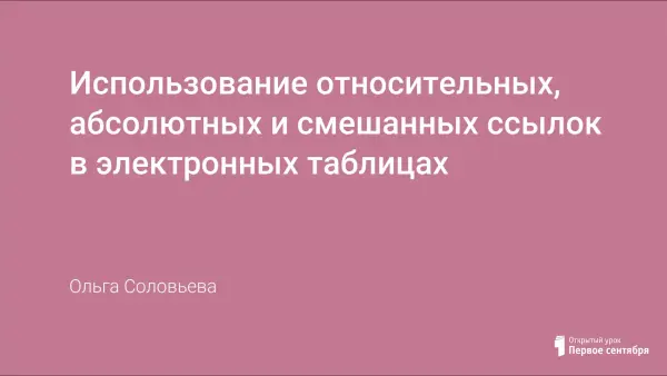 На уроке учащиеся учатся использовать в формулах электронной таблицы относительные, абсолютные и смешанные ссылки, развивают логическое мышление учащихся, формируют познавательный интерес к предмету.