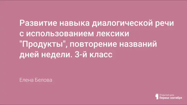 Конспект открытого урока в 3-м классе (УМК «Enjoy English») по теме «Развитие навыка диалогической речи с использованием лексики «Продукты», повторение дней недели». В ходе данного урока учащиеся повторяют слова по теме «Продукты», повторяют и закрепляют названия дней недели, знакомятся с новой лексикой по теме «Продукты», развивают навык диалогической речи с использованием клише Here you are – You are welcome, тренируют навык чтения.
