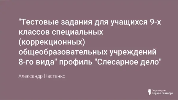 Вопросы теста отражают все основные темы, включённые в экзаменационные билеты по профилю «Слесарное дело» и могут быть использованы как инструмент для контроля усвоения теоретических знаний учащихся, так и непосредственно для подготовки к итоговой аттестации.