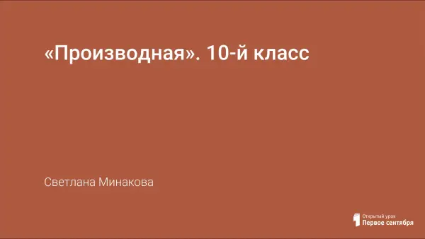 Урок систематизирует знания учащихся по учебнику «Алгебра и начала анализа 10–11» А.Н. Колмогоров, А.М. Абрамов и др. Повторяются определения производной, таблицы производных; закрепляются навыки нахождения производной суммы, произведения и частного функции, производной сложной функции.