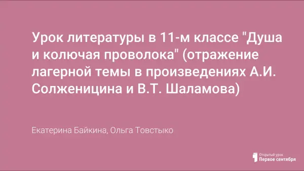 Урок литературы в 11-м классе "Душа и колючая проволока" (отражение лагерной темы в произведениях А.И. Солженицина и В.Т. Шаламова)