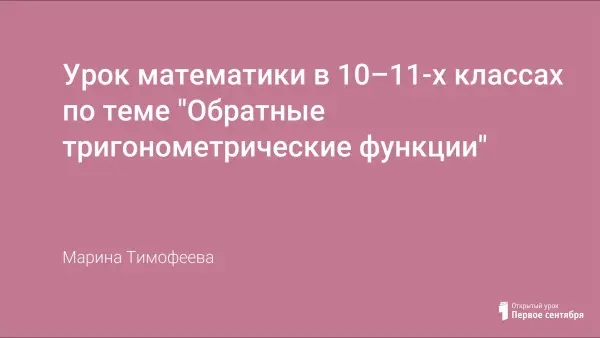 На уроке обобщаются и систематизируются знания учащихся по теме «Обратные тригонометрические функции», контролируется степень усвоения знаний, умений и навыков учащихся, воспитываются вычислительные навыки, самостоятельность, стремление к самореализации.